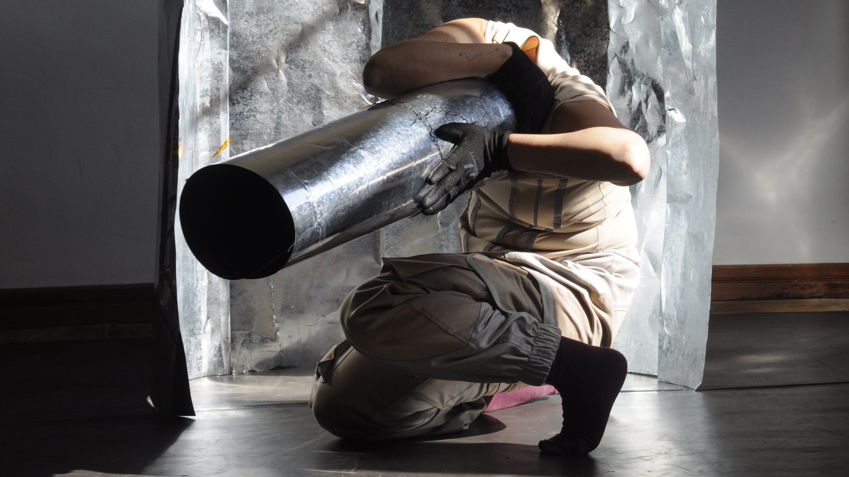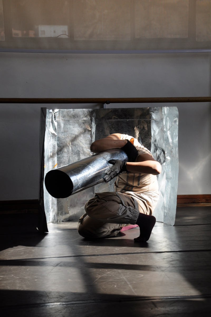 "A-0" es un dispositivo coreográfico y sonoro que da vida a una obra de danza, sumergiéndose en la esencia de las materialidades y explorando la interacción entre los cuerpos, el espacio y su energía. En esta experiencia escénica, lo tangible del acero se transforma constantemente, sostenido y movilizado por los cuerpos en escena. Una fuerza de voluntades en la que se introduce a la inteligencia artificial como un oráculo sobre la vida y la danza misma de los intérpretes, provocando yuxtaposiciones entre lo humano y no humano, entre lo vivo y no vivo. ¿Quién mueve a quién?